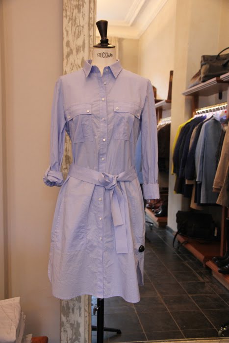 Knee-lenght shirt-blouse dress, waisted. With belt